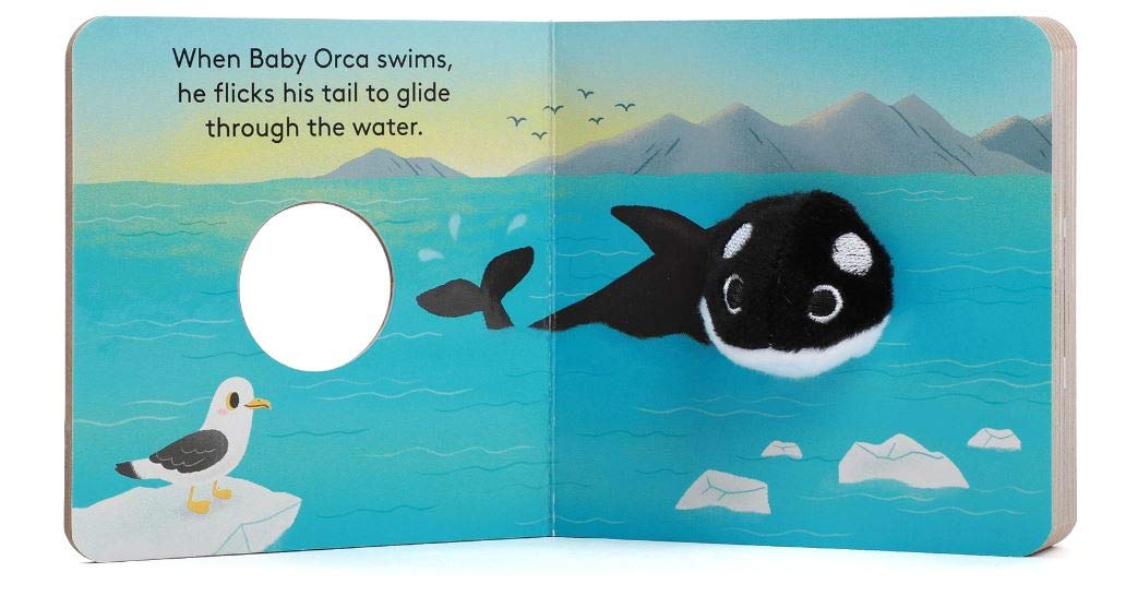 Fans of other books in the Finger Puppet Book series such as Baby Koala, Baby Dragon, and Baby Elephant will love swimming the seas with Baby Orca.Babies and toddlers will love this board book filed with colorful pictures, simple story, soft finger puppet, and sized perfectly for small hands to hold.- Sturdy board book
