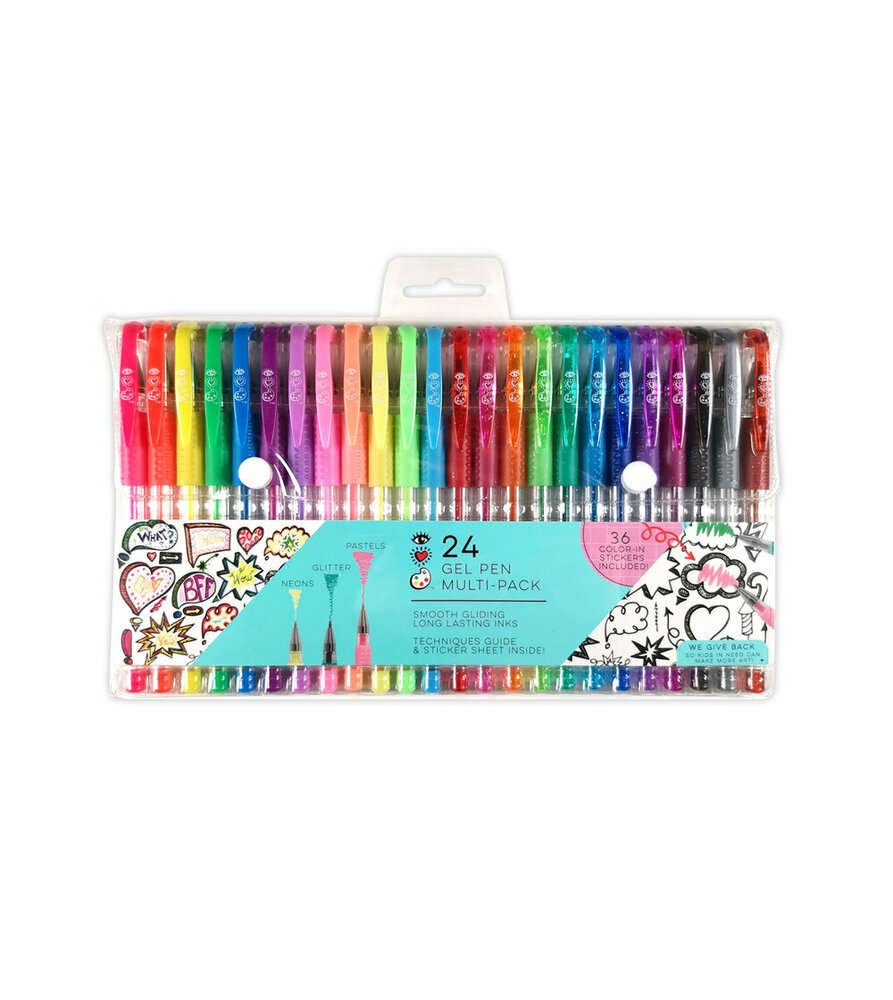 The best gel pen you can find! With a rubber comfort grip, easy-flow nib and a long-lasting ink supply, this is the premium choice for gel pen lovers. Whether you are drawing or writing with super fine lines or coloring in bigger areas, enjoy smooth continuous coverage with neons, pastels and glittery colors. Includes 24 Gel Pens, a sticker sheet to color in and an Artist Techniques Guide for tips, tricks, and an easy practice project that gets you familiar with the medium.