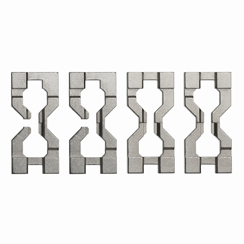 This puzzle is created from two each of two types of pieces. With a scrupulously calculated design and tricky movement of the pieces, this will not be an easy puzzle to solve. Designed by Korean designer JinHoo Ahn.